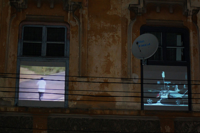 The resultant visuals are video-projected onto the two windows of the building where Loading Open LAB is located and can be seen outside by the public. The public becomes a voyeur watching the most intimate shadows playing through the windows of a private home.